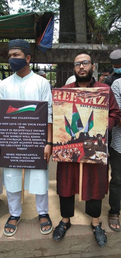 In Chittagong, protesters took to the streets to denounce Israel's deadly air raids on Gaza.